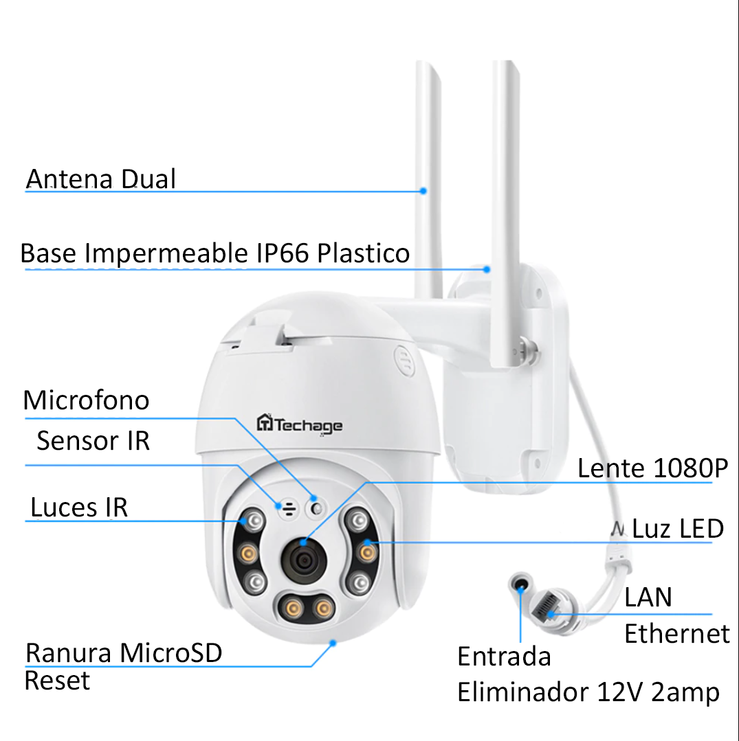 Cámara IP PTZ Para Exteriores o Interiores, Conéctala por Wifi o Cable de RED al módem, Descarga la APP y úsala sin mas complicaciones.